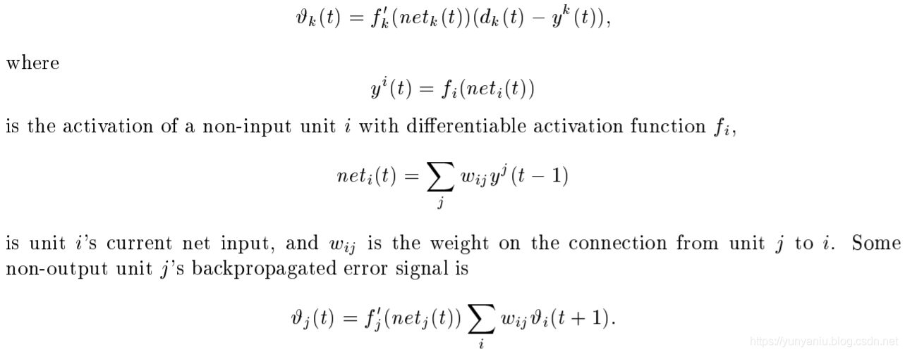 传统的BPTT(如Williams和Zipser 1992)。输出单元k在t时刻的目标用dk (t)表示,利用均方误差,k的误差信号为